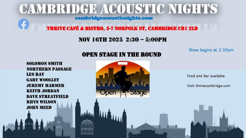 Next Open Stage:- Come back here soon to get the latest news about Cambridge Acoustic Nights and where our new home will be.